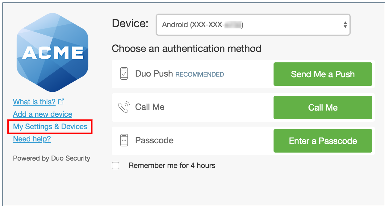 Complete the Duo authentication. If self-service device management the Manage devices or My Settings Devices button has been enabled by your administrator you can reactivate Duo Mobile in the traditional Duo.